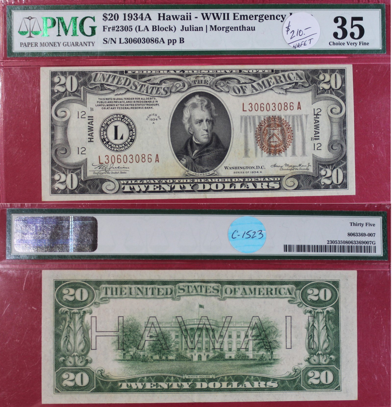 SMALL | $20.00 | SILVER CERT. | 1934-A | FR-2305 HAWAII | VF-35 PMG | $210.00 |