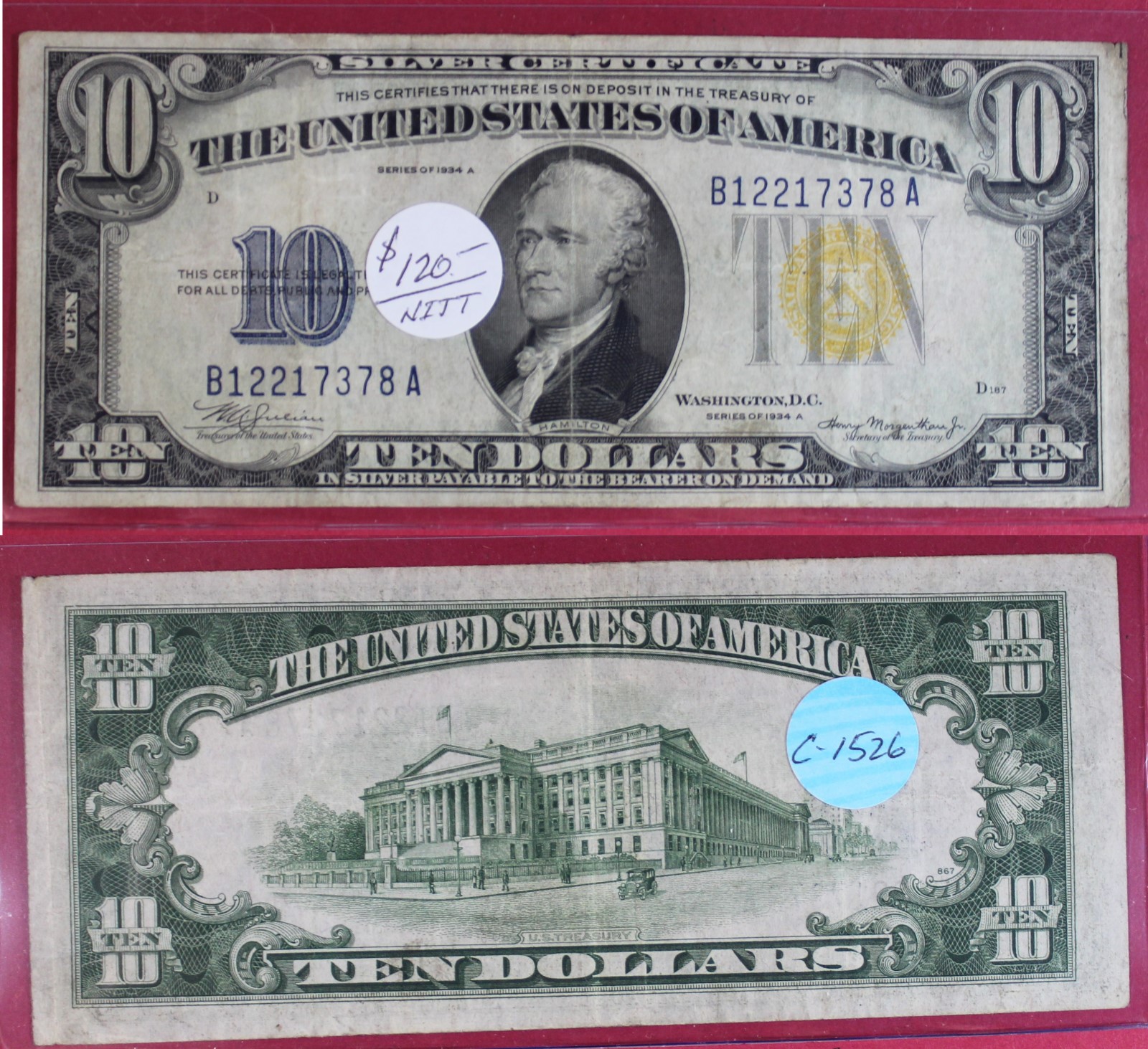 SMALL | $10.00 | SILVER CERT. | 1934-A | FR-2309 N AFRICA | VF-30 | $120.00 |