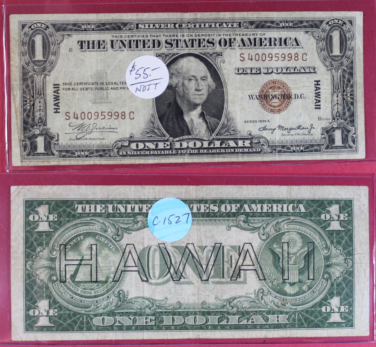 SMALL | $1.00 | SILVER CERT. | 1935-A | FR-2300 HAWAII | F-15 | $55.00 |