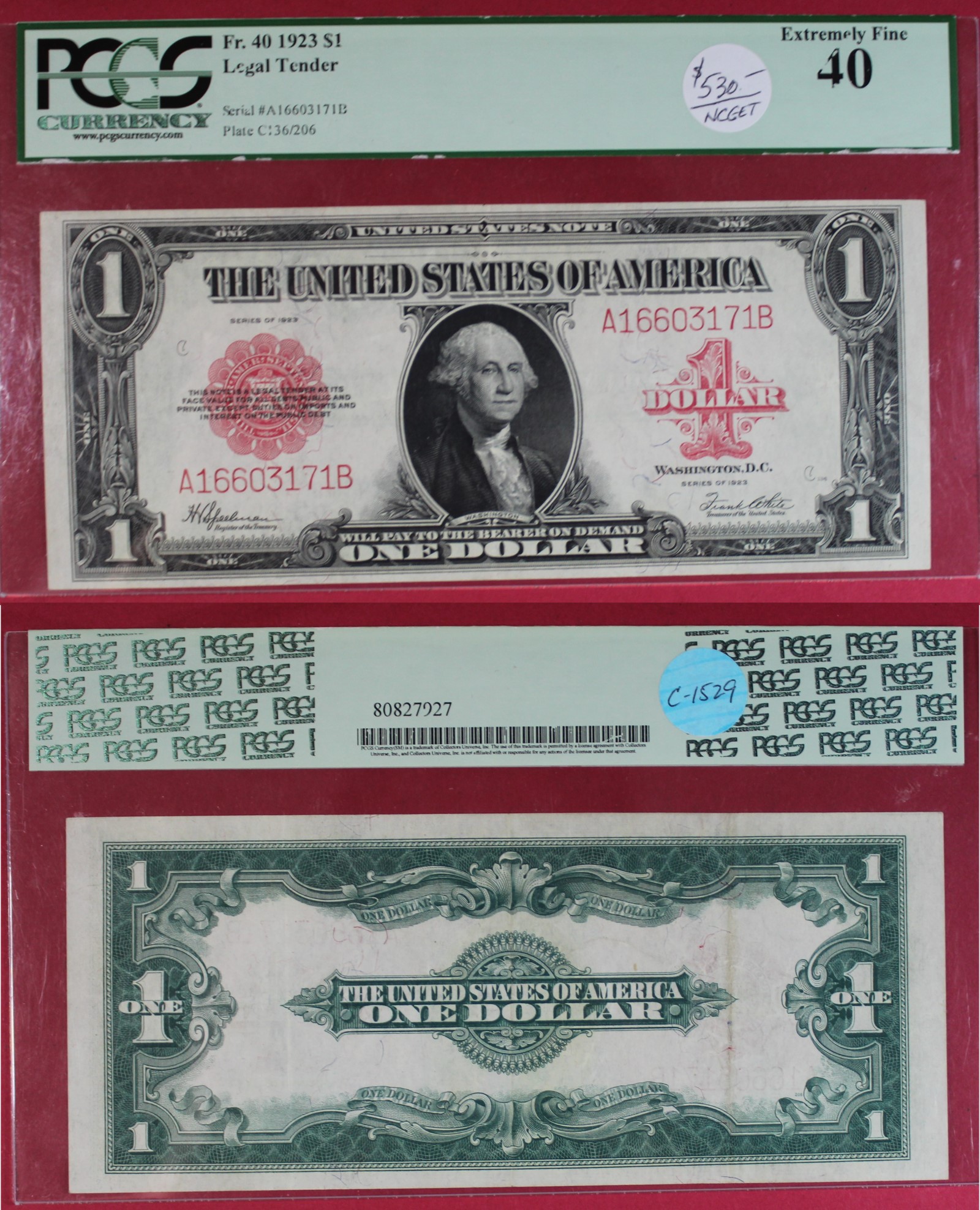 LARGE | $1.00 | LEGAL TNDR | 1923 | FR-40 | XF-40 PCGS | $530.00 |