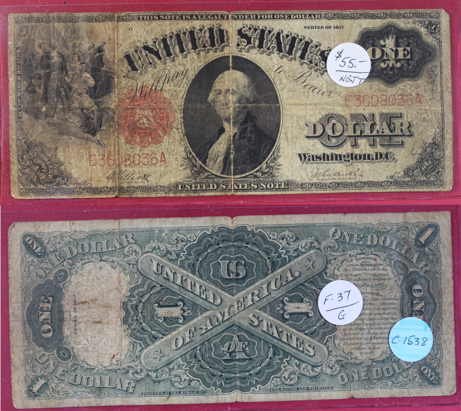 LARGE | $1.00 | LEGAL TNDR | 1917 | FR-37 | G-4 | $55.00 |