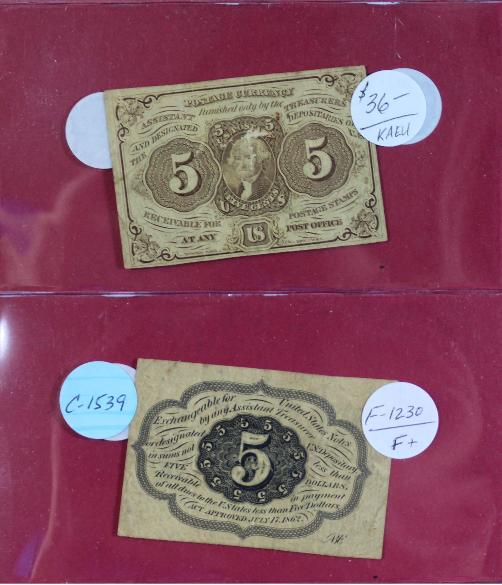 FRACTIONAL | $0.05 | FRACTIONAL | 1862 | FR-1230 | F-15 | $36.00 |