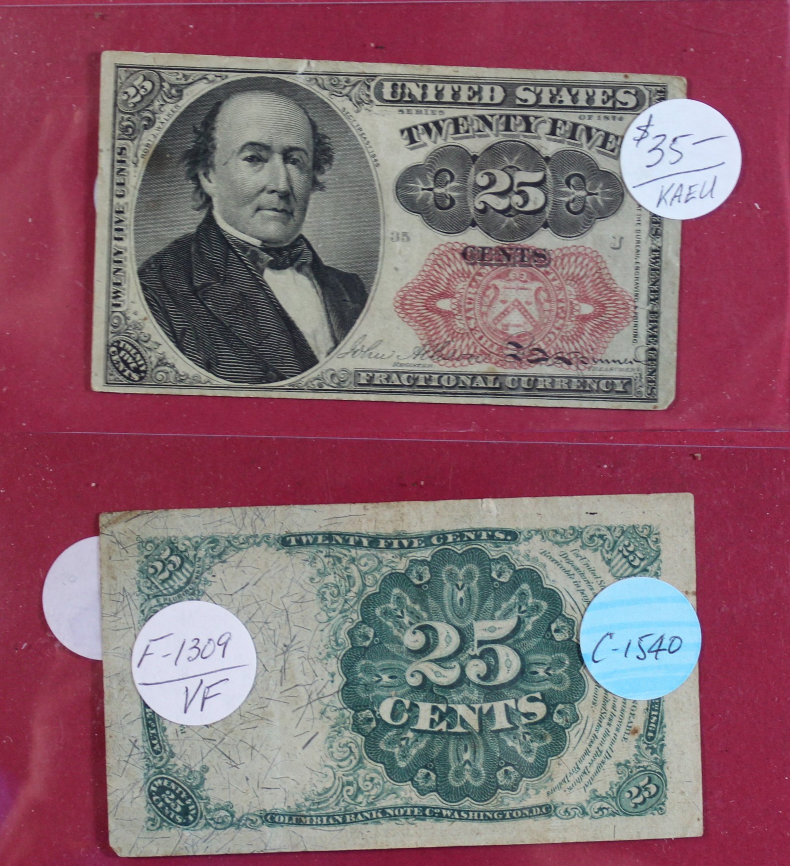 FRACTIONAL | $0.25 | FRACTIONAL | 1864 | FR-1309 | VF-20 | $35.00 |