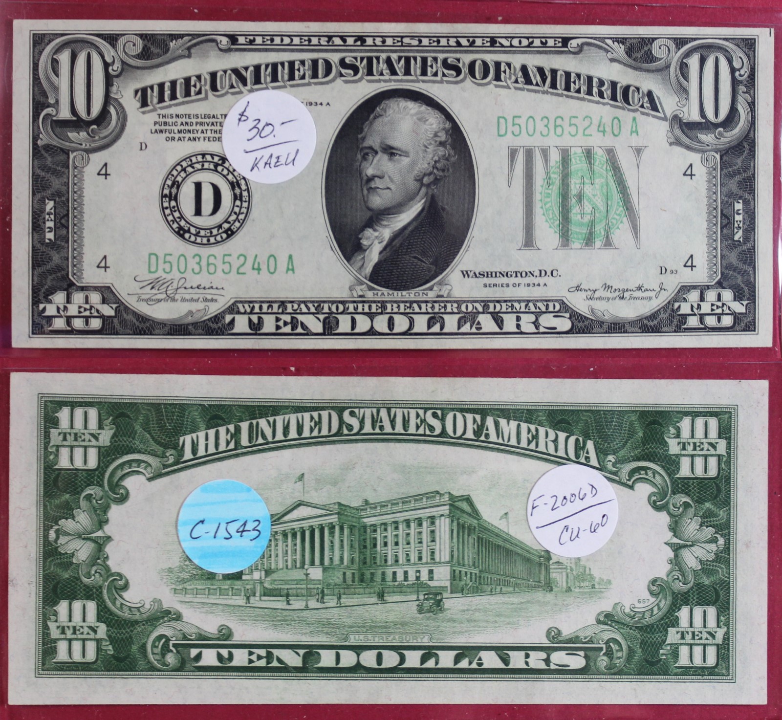 SMALL | $10.00 | FED. RES. | 1934-A | FR-2006D | CU-60 | $30.00 |