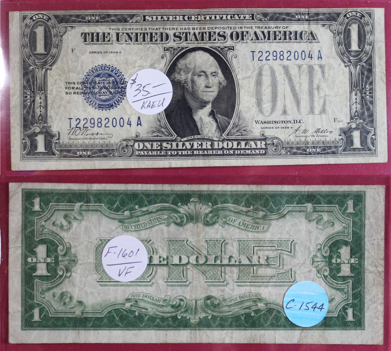 SMALL | $1.00 | SILVER CERT. | 1928-A | FR-1601 | VG-10 | $30.00 |
