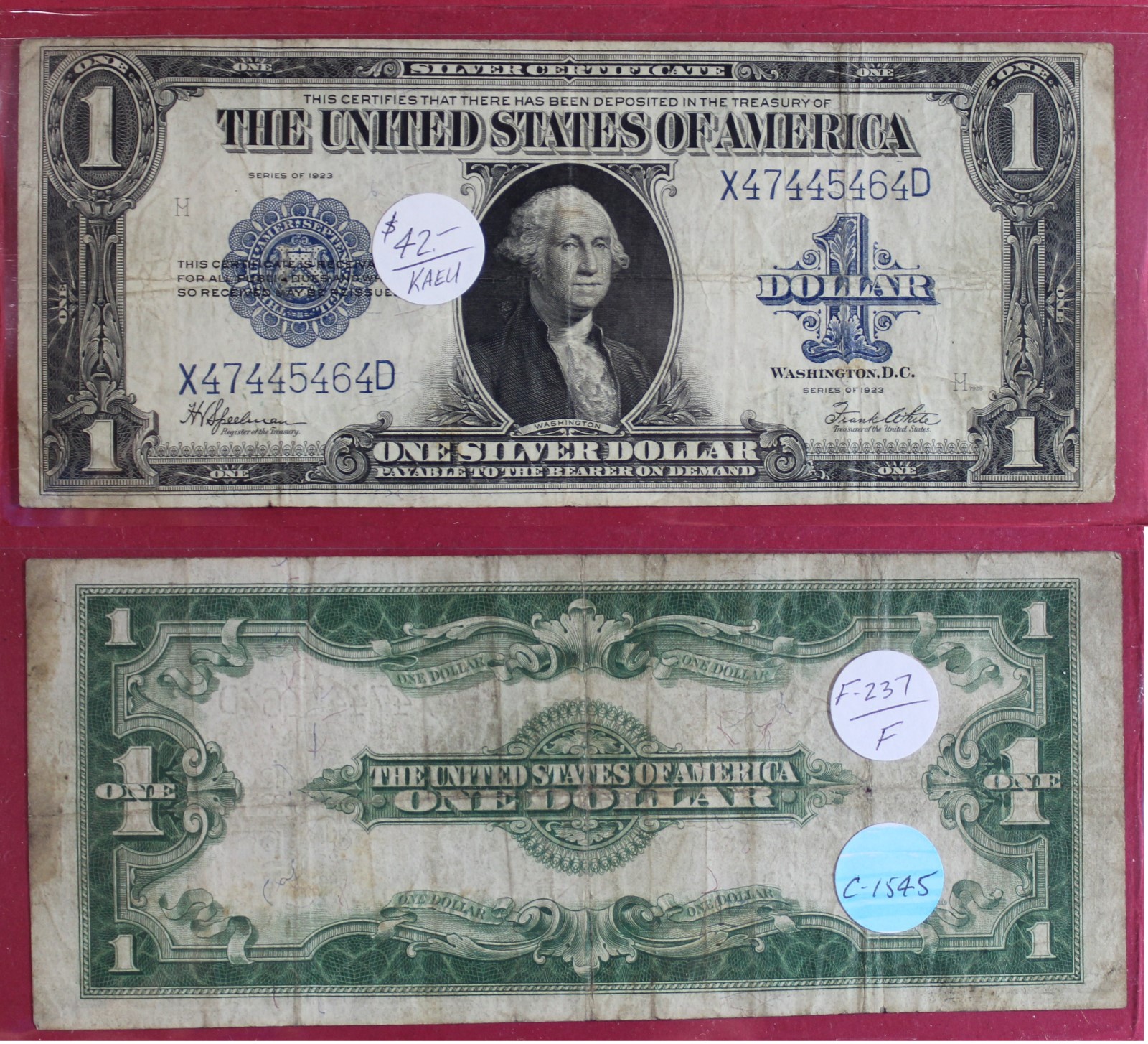 LARGE | $1.00 | SILVER CERT. | 1923 | FR-237 | F-12 | $42.00 |
