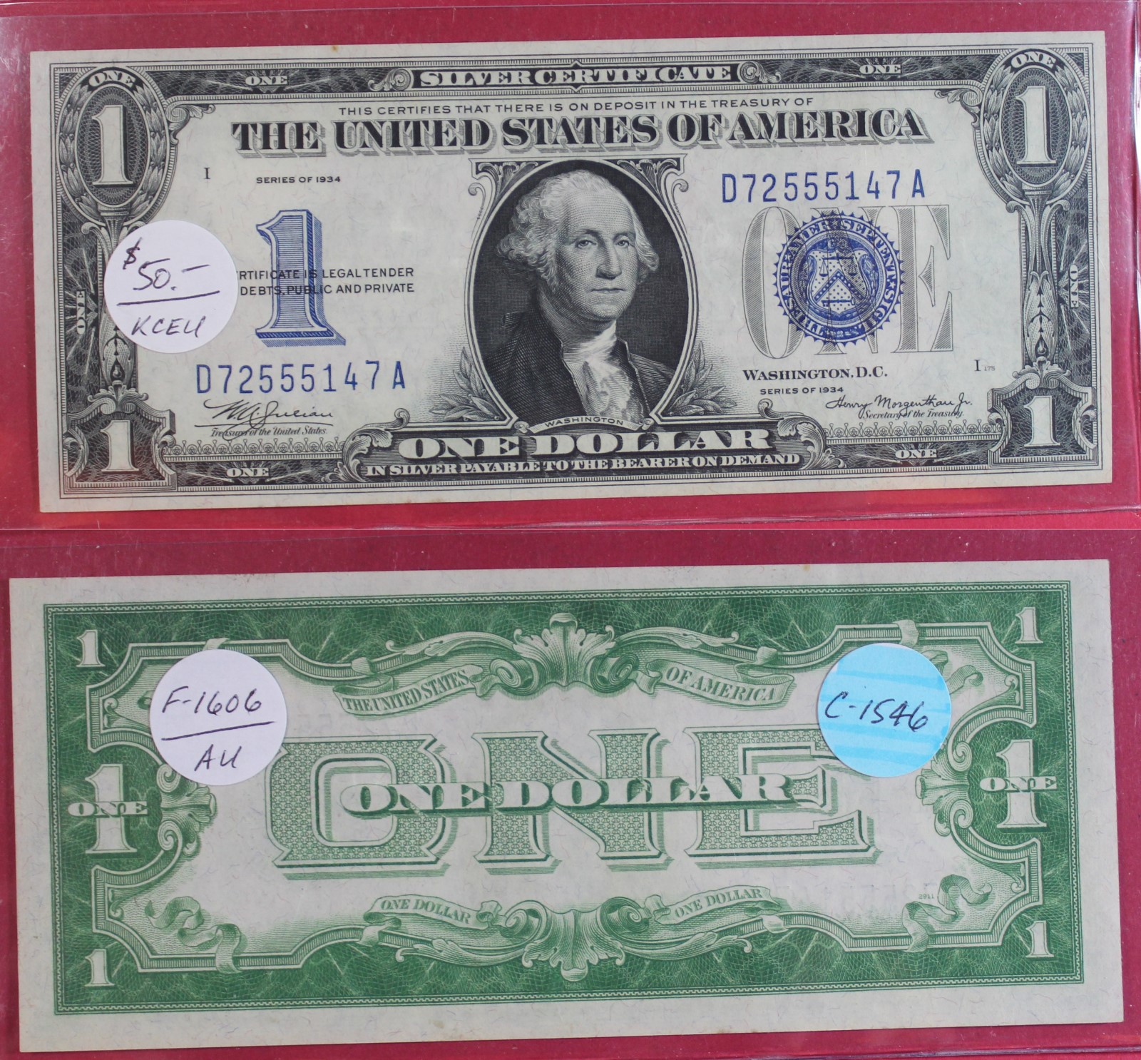SMALL | $1.00 | SILVER CERT. | 1934 | FR-1606 | AU-50 | $50.00 |