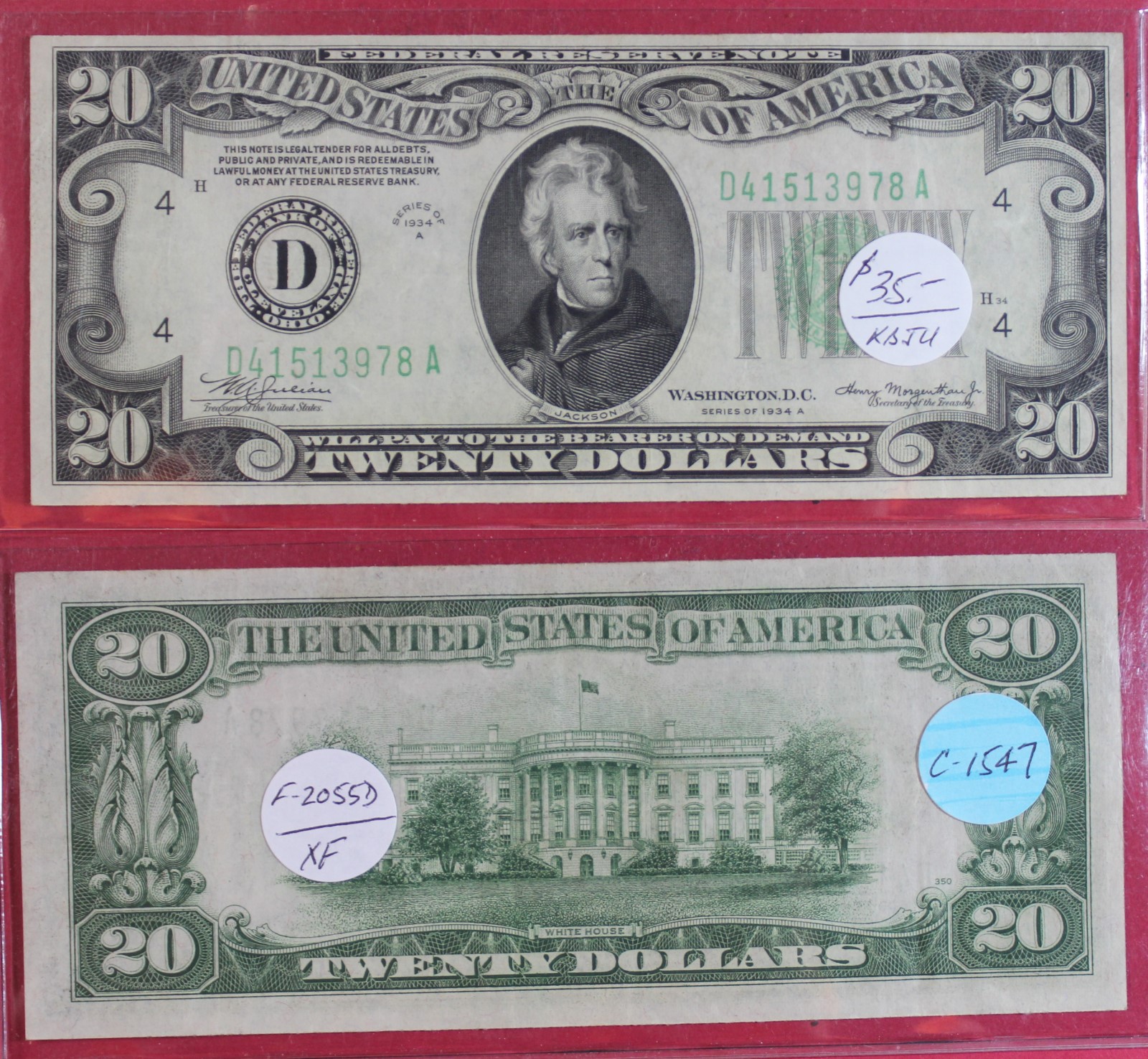 SMALL | $20.00 | FED. RES. | 1934-A | FR-2055D | XF-40 | $35.00 |