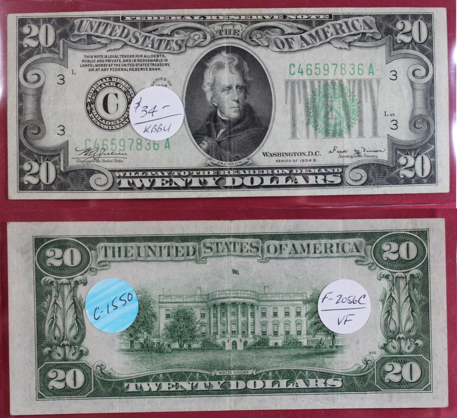 SMALL | $20.00 | FED. RES. | 1934-B | FR-2056C | VF-20 | $34.00 |