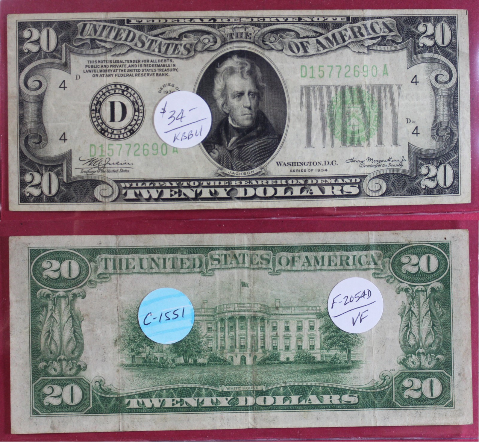 SMALL | $20.00 | FED. RES. | 1934 | FR-2054D | VF-20 | $34.00 |