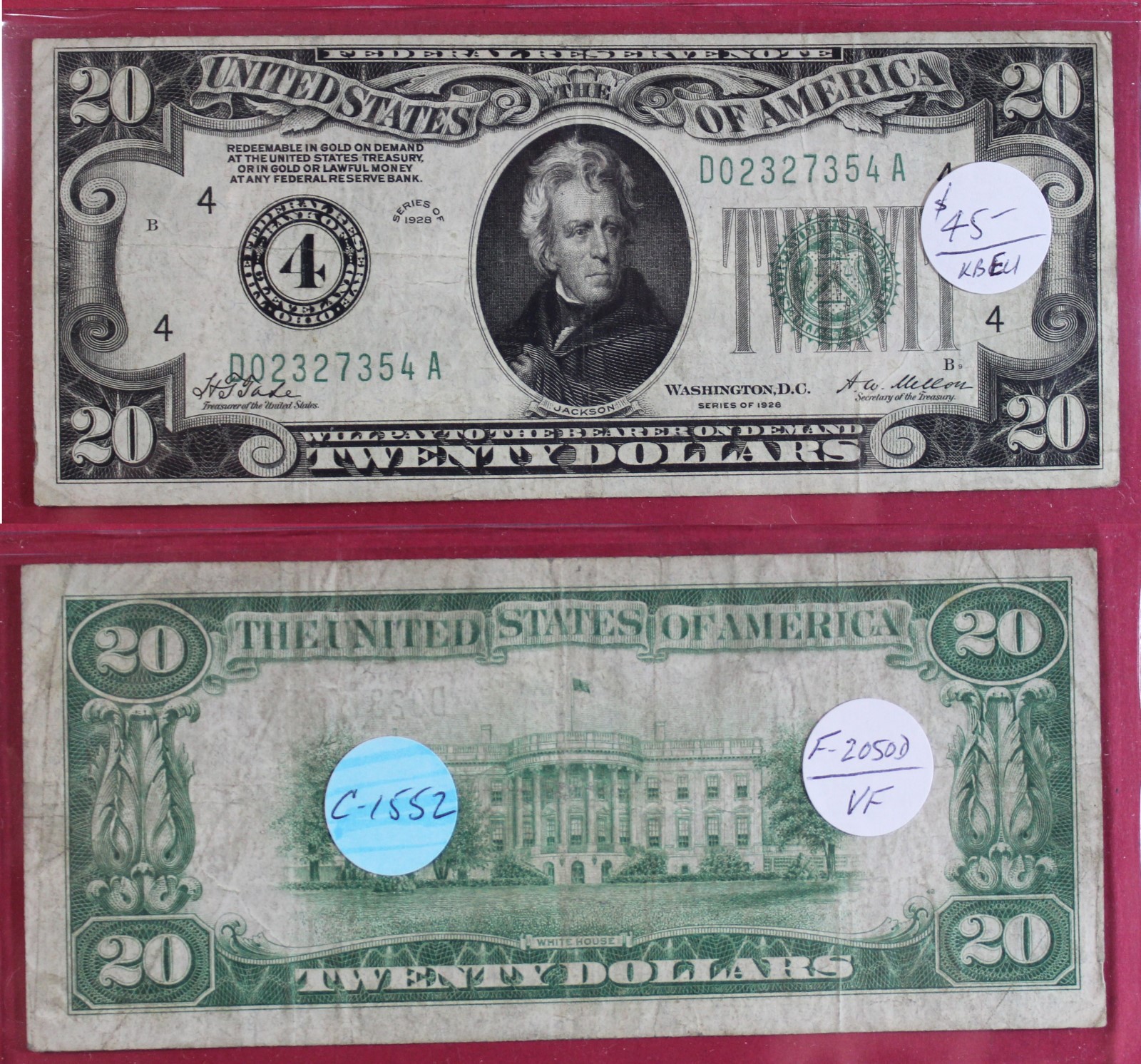 SMALL | $20.00 | FED. RES. | 1928 | FR-2050D | VF-20 | $45.00 |